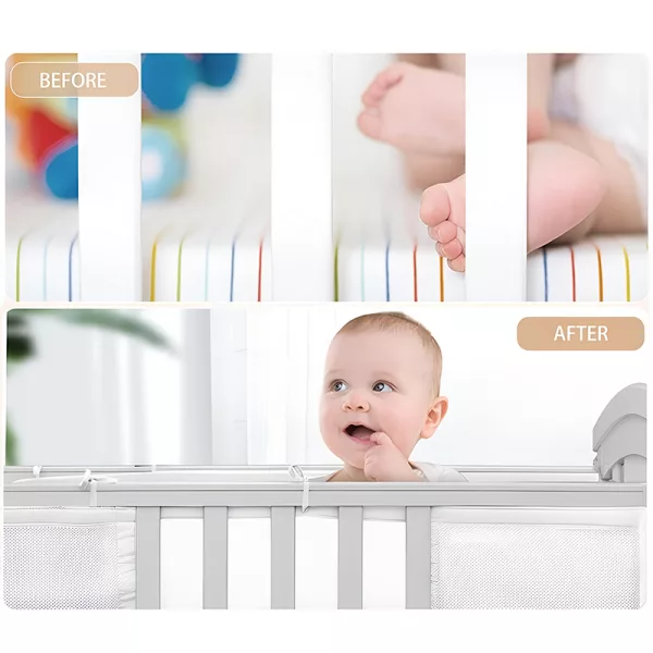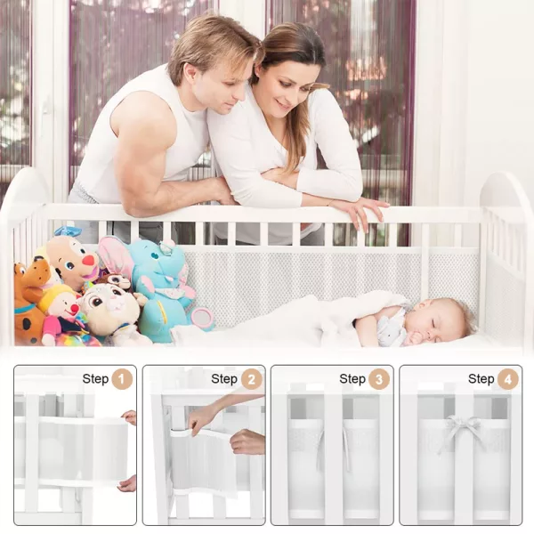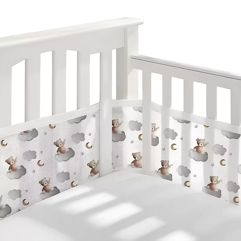 The bumper is made from mesh material that allows for optimal airflow. It reduces the risk of overheating, guaranteeing your baby's comfort.