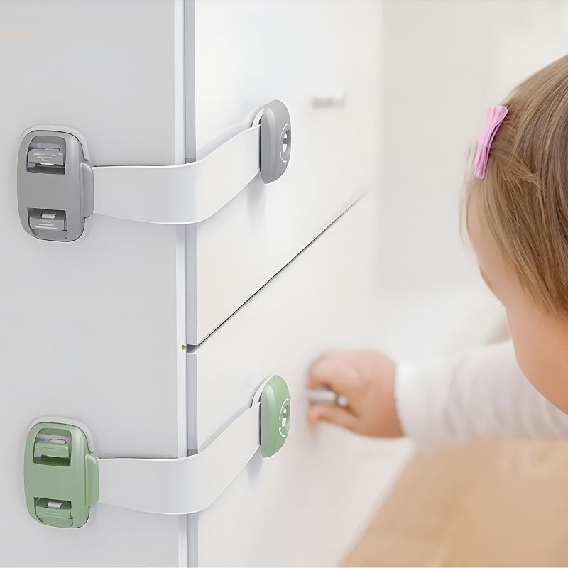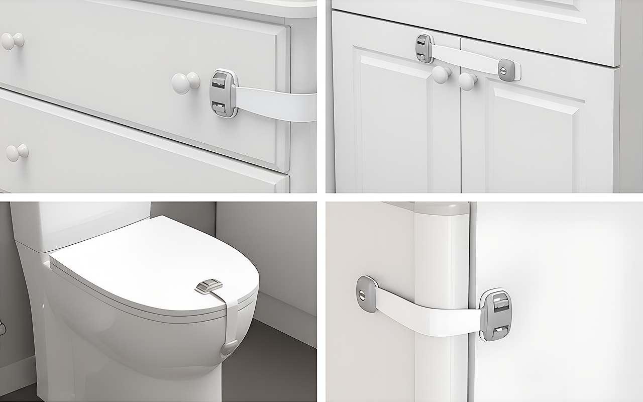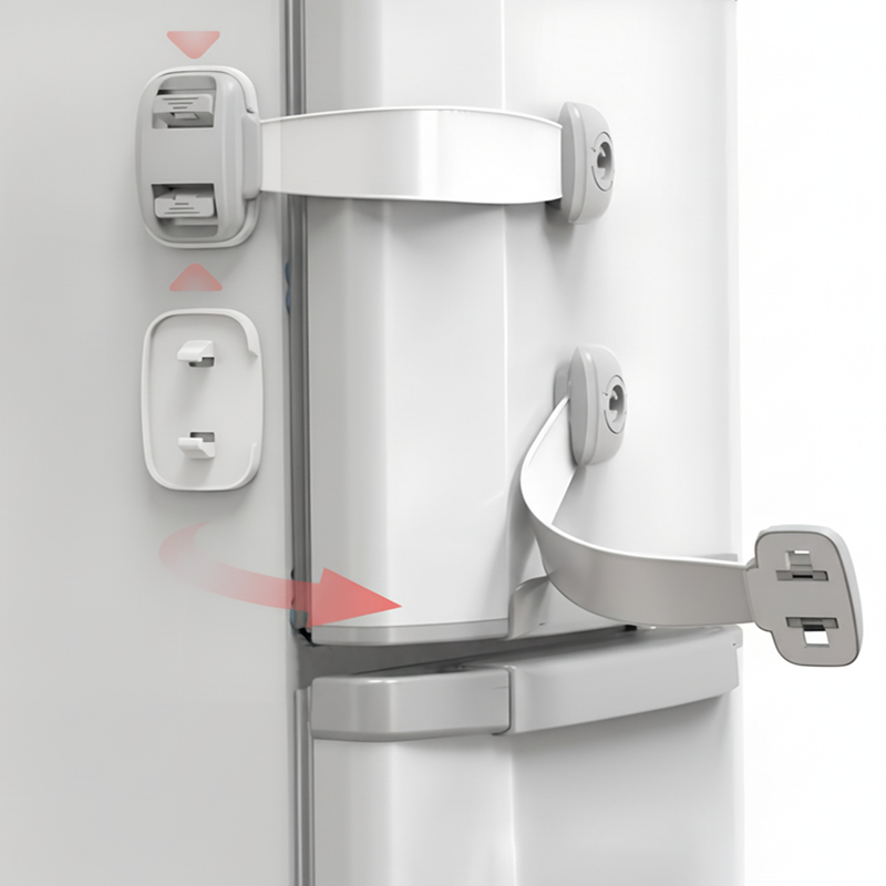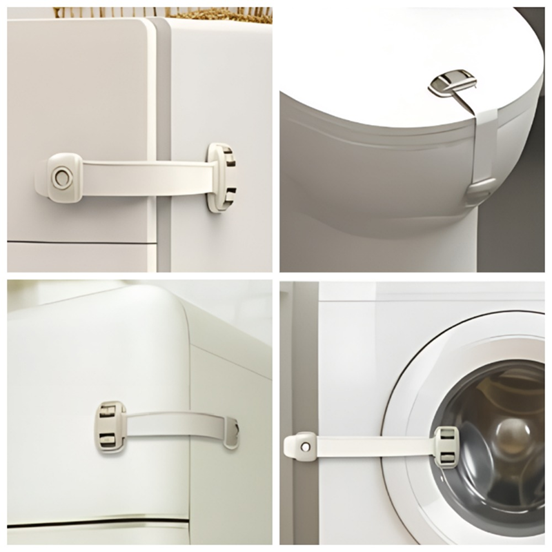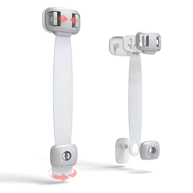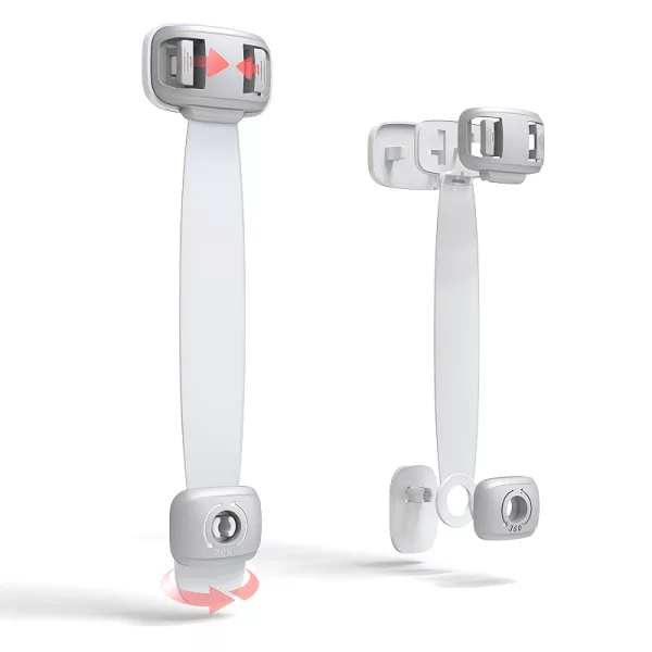 Ortorex safety lock keeps curious children away from danger. Flexible design works across toilets, fridges, cupboards, and drawers. No need to worry about marks left behind or scratched corners.