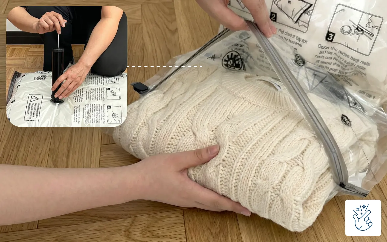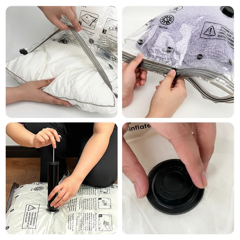 Fill the Ortorex bag, then use the pump to quickly remove air. Your jumpers and bedding flatten quickly with minimal effort.