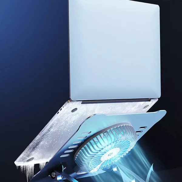 This stand makes late-night work a breeze. The fan keeps my laptop cool, and I love the glowy light.