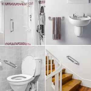 Crafted from high-quality stainless steel, our grab bar ensures long-term use. It can support substantial weight without getting damaged.