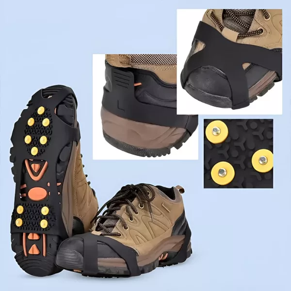Ten hard-wearing cleats provide excellent traction. They prevent you from falling on icy, slippery surfaces. They ensure your safety during winter outings.