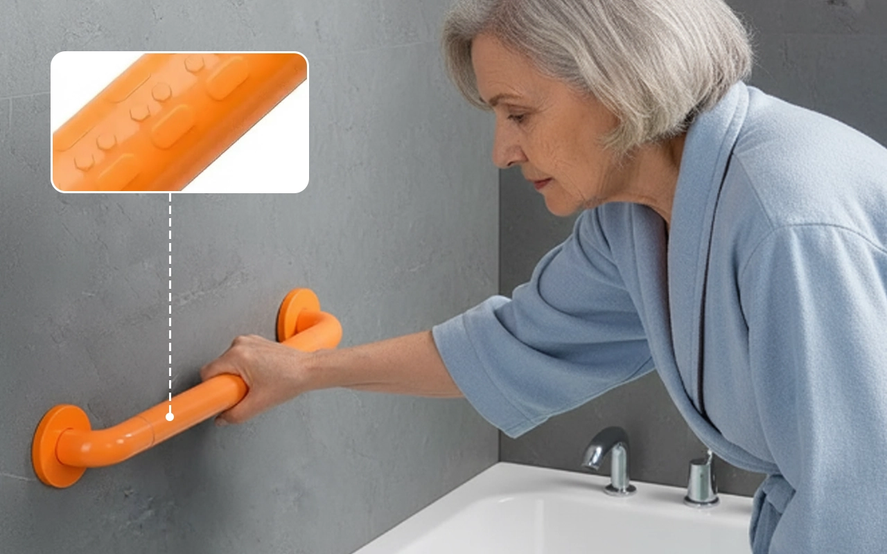 Finally, something my grandma can use every day. It was really easy to fasten to the wall and feels solid even when she holds tight.