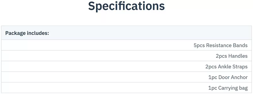 The Resistance Band Set includes five exercise bands, one door anchor, two cushioned handles, the bag for carrying and user manual to allow you to perform the widest variety of resistance training exercises. Fitted with durable tubes, reinforced links, and heavy-duty carabiners, these anti-snap exercise bands are designed to withstand intense daily exercise sessions.