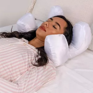 This pillow is the comfiest thing ever! No more tugging or creasing on my face. I get up feeling refreshed and my skin looks really good.
