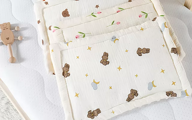 This pillow is crafted from plush cotton that is gentle on the baby's skin. It will comfort your child, making them calm and relaxed.