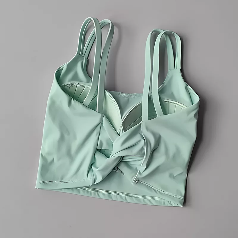 Double straps and full cups hold everything in place, giving you complete confidence. Enjoy steady support, whether you are stretching or sprinting.