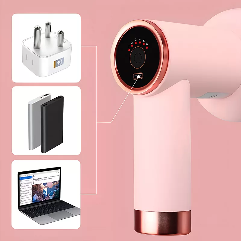 This handheld massager comes with multiple attachments. Each is designed to target a specific muscle group.