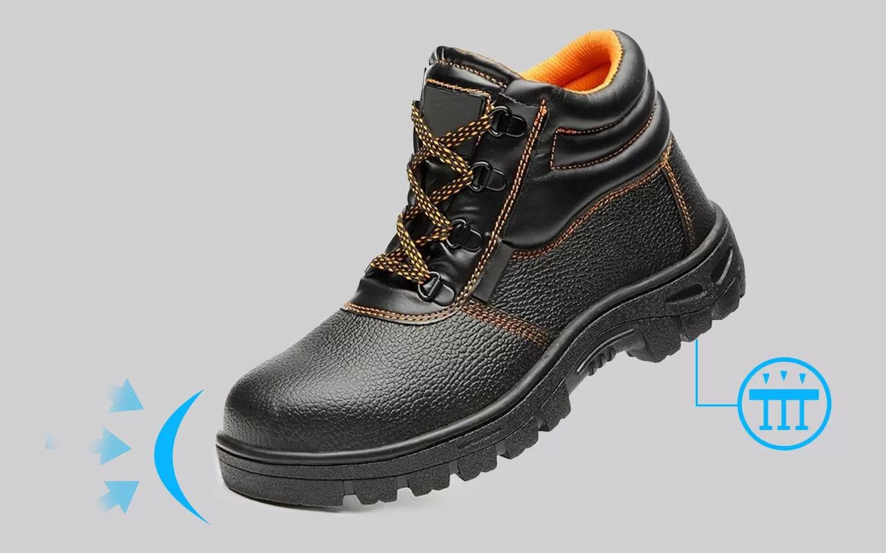 Reinforced steel toes help block crushing hazards at work. Your feet stay safe even around falling tools or heavy gear.