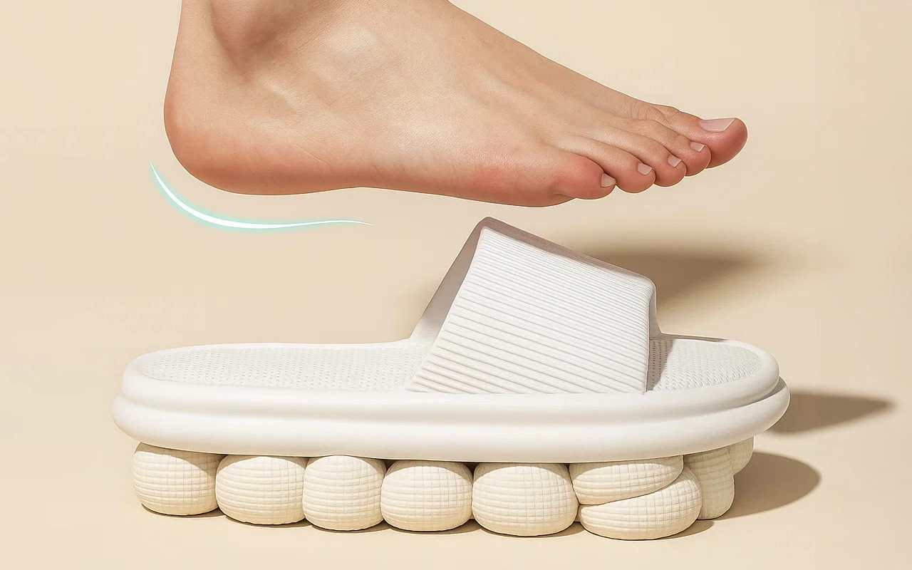 These slippers are the softest I’ve ever tried. My feet feel happy and relaxed, even after standing for ages. The open toe keeps them nice and cool.