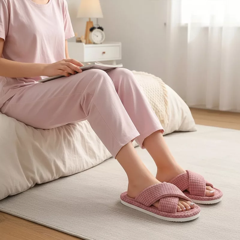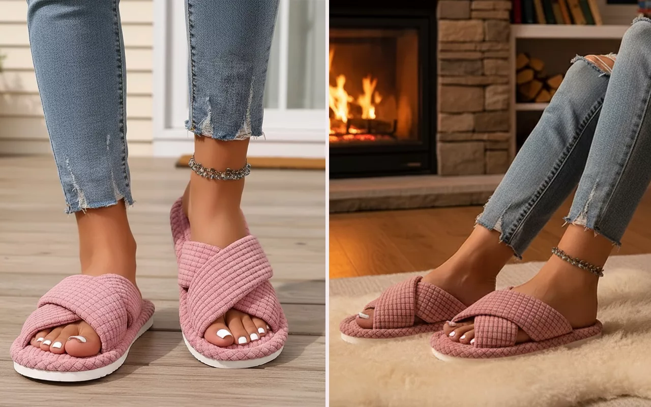 Cross bands keep your feet stable while you move. Slip-resistant soles help prevent unwanted accidents in any room.