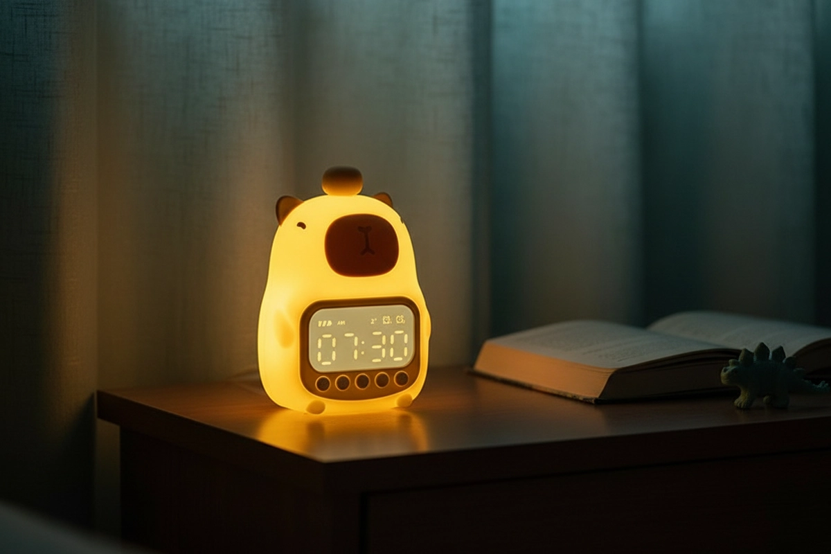 Gentle light helps children feel safe after bedtime. Easy digital controls make waking up simple every day. Safe, soft materials feel pleasant and reassuring at night. Ortorex Cute Capybara Alarm Clock adds cheer to every bedroom.
