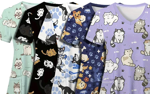 Super lightweight and airy, stays cool the whole time I’m moving around. I get so many smiles from patients because of the cheerful colors.