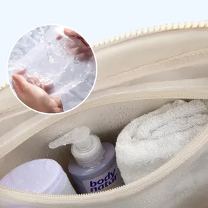 Wet items do not ruin other belongings inside the tote. Special lining blocks leaks, keeping your things perfectly dry.