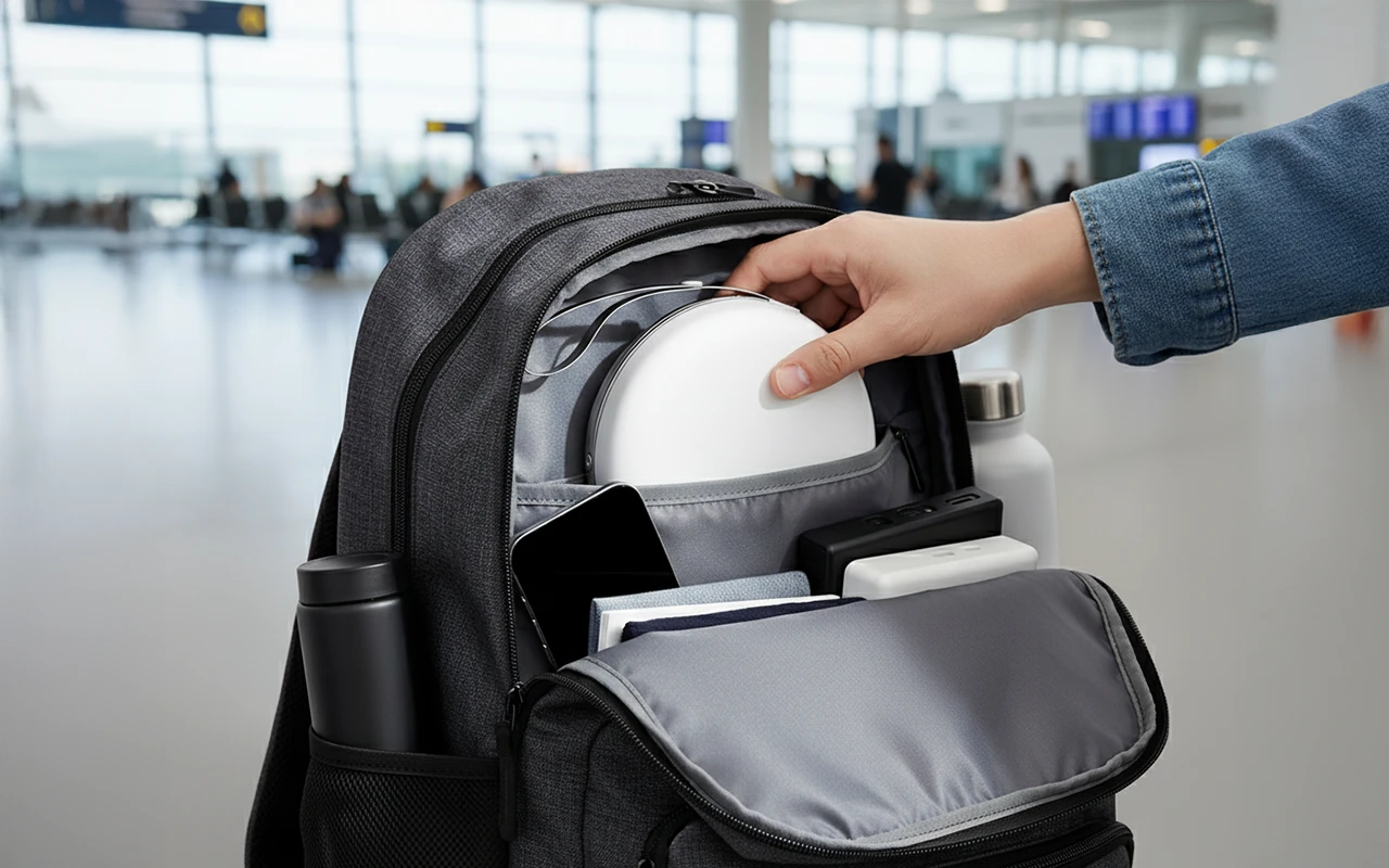 Fits inside a tiny case, saving precious bag space. Take it anywhere, from planes to car rides, without hassle.