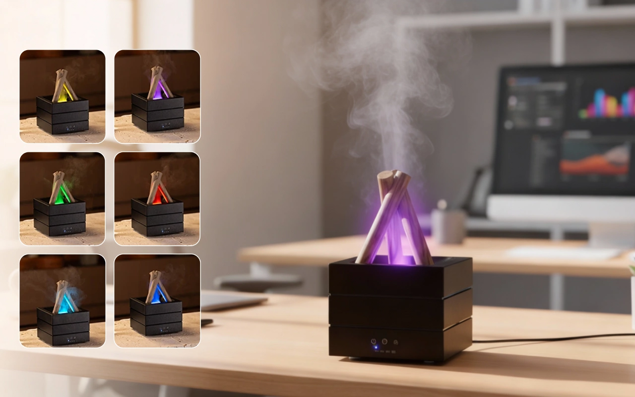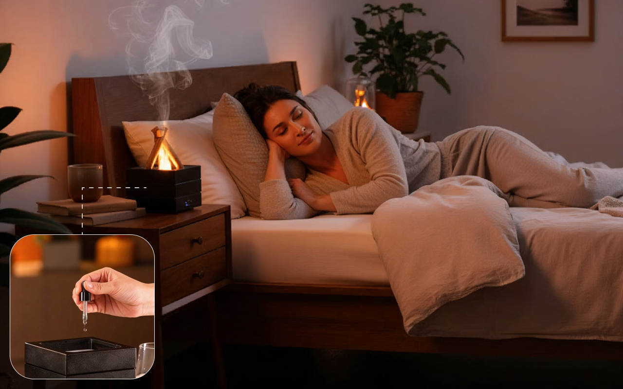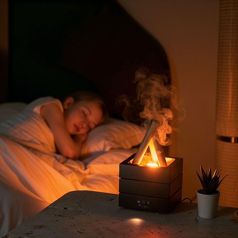 The bonfire diffuser fills my room with a gentle mist and the flashing colors help me sleep better every night. I use lavender oil for extra calm.