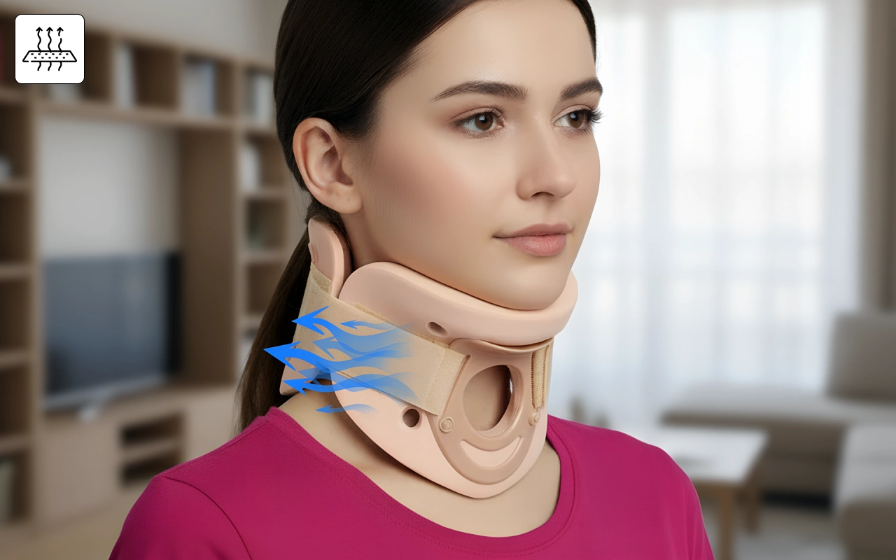 After weeks of waking with a stiff neck, this collar finally helped. It’s light, soft on my skin, and doesn’t make me sweat under it.