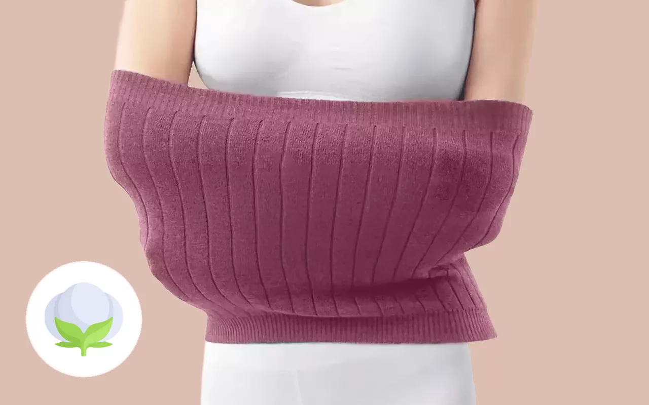The heat stays close to your skin without trapping sweat. Feel gentle coverage that eases tension and supports sensitive spots.