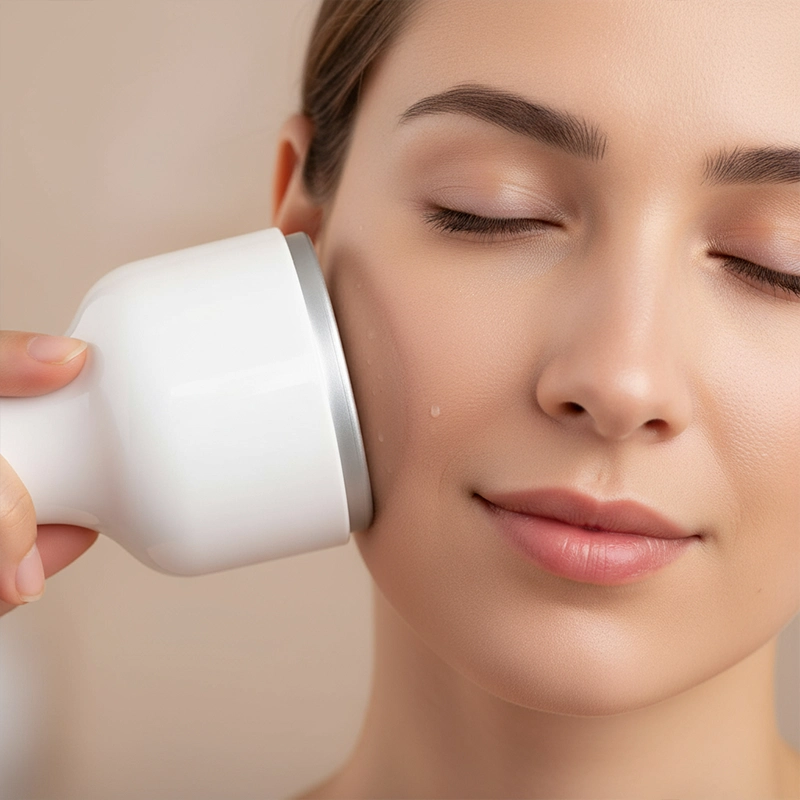 Feel your skin tighten gently for a flawless appearance. Chilled metal helps your face look softer, clearer, and more youthful.