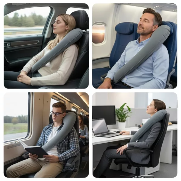 I use my inflatable pillow every time I visit my family by train. No more stiff shoulders!