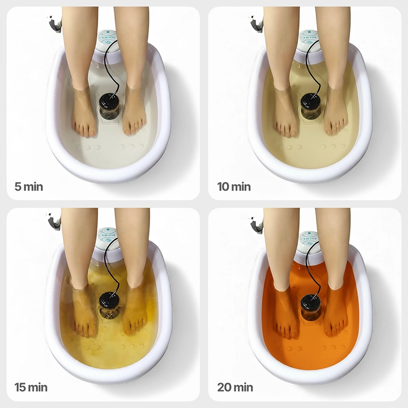 Watch impurities leave as water changes colour under your feet. See heavy metals and waste visibly removed each time.