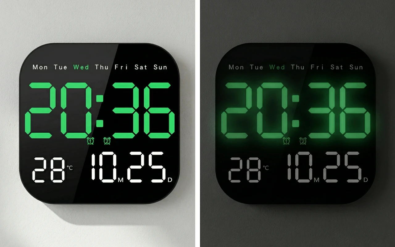 I work nights and sleep during the day, and being able to lower the brightness while still having a clear clock on the wall is really helpful.