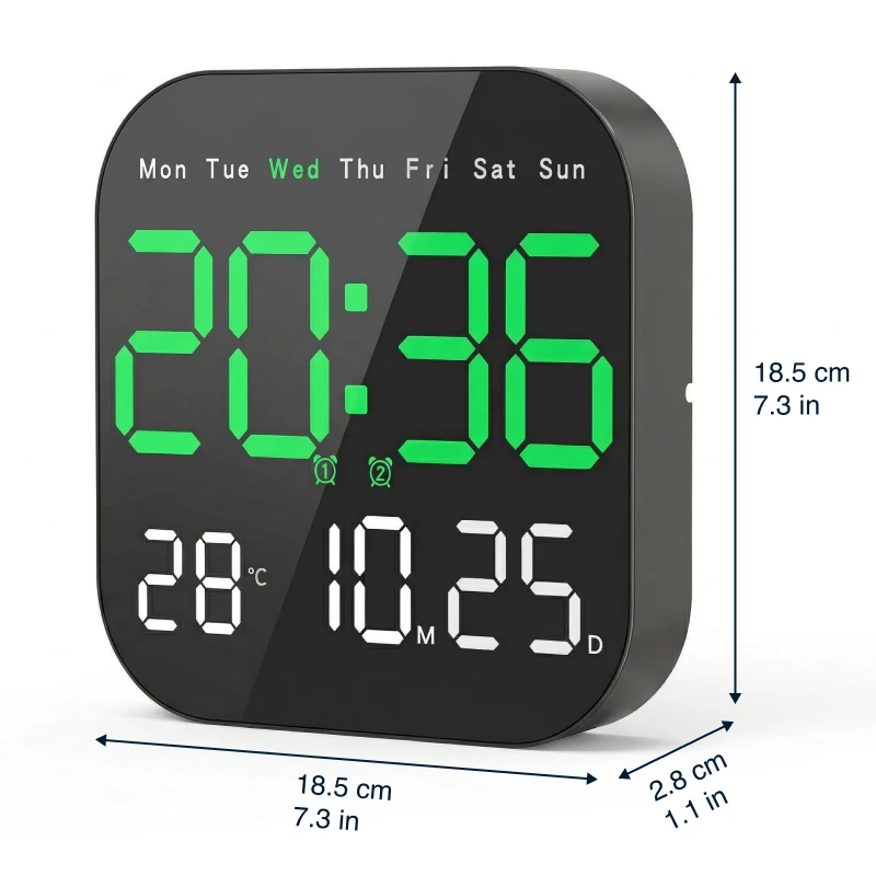 Read numbers fast from across busy spaces. Pick ten light levels for day, evening, or sleep.