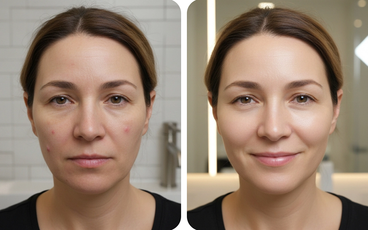 My cheeks look less blotchy and more fresh. I use the mask while watching TV. My friends noticed the glow!