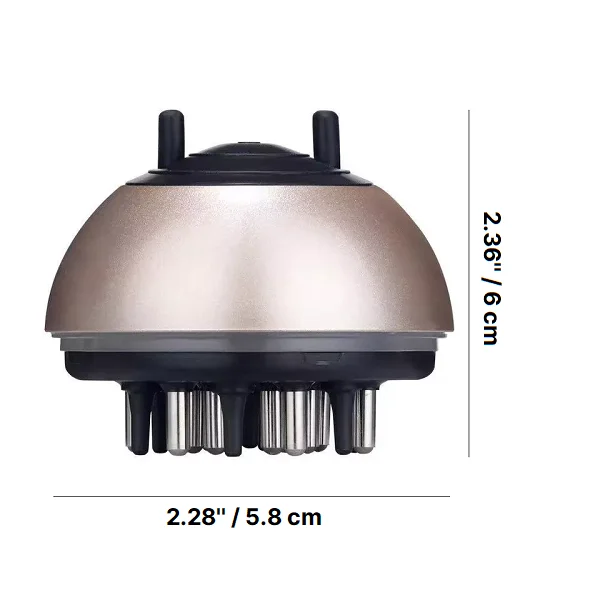 The rolling ball teeth expose the liquid only when you press the comb against your head, preventing waste and mess.