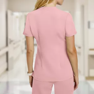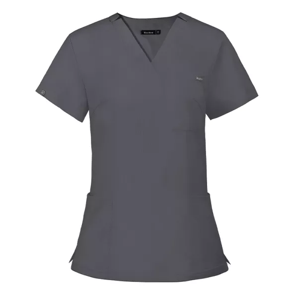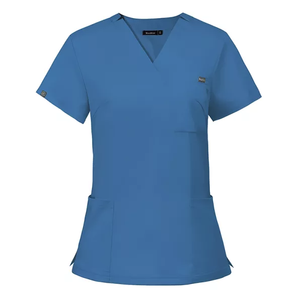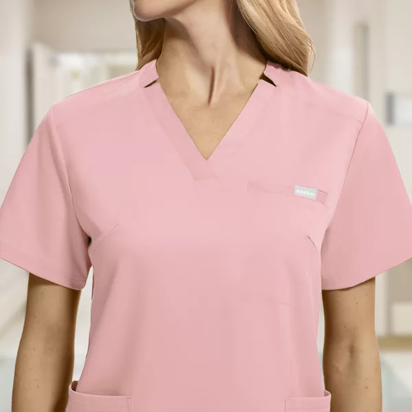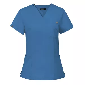 These scrubs feel soft all day. I really like that I don’t have to iron them before work, just pull it on and go.