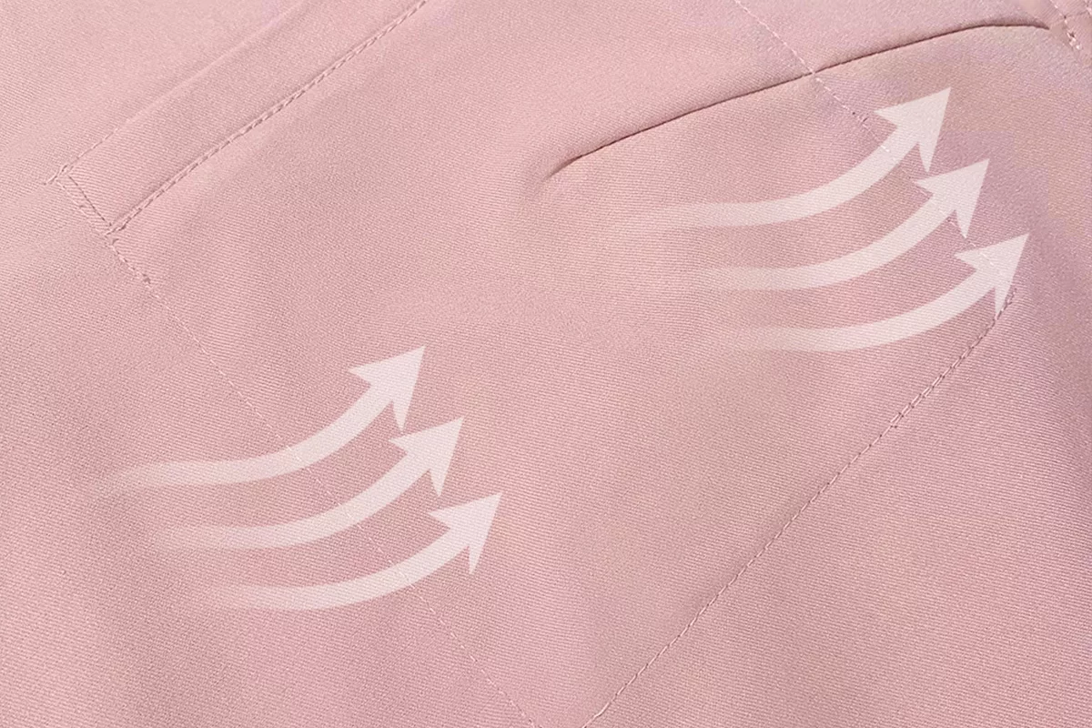 The material lets air flow through and I don’t get hot at all, even rushing around my whole shift. Best buy this year.