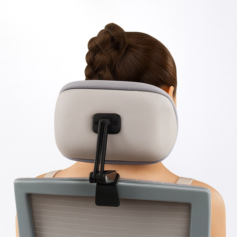 Reduce tension in your shoulders by holding your head gently. This support eases pressure and prevents discomfort from poor seating.