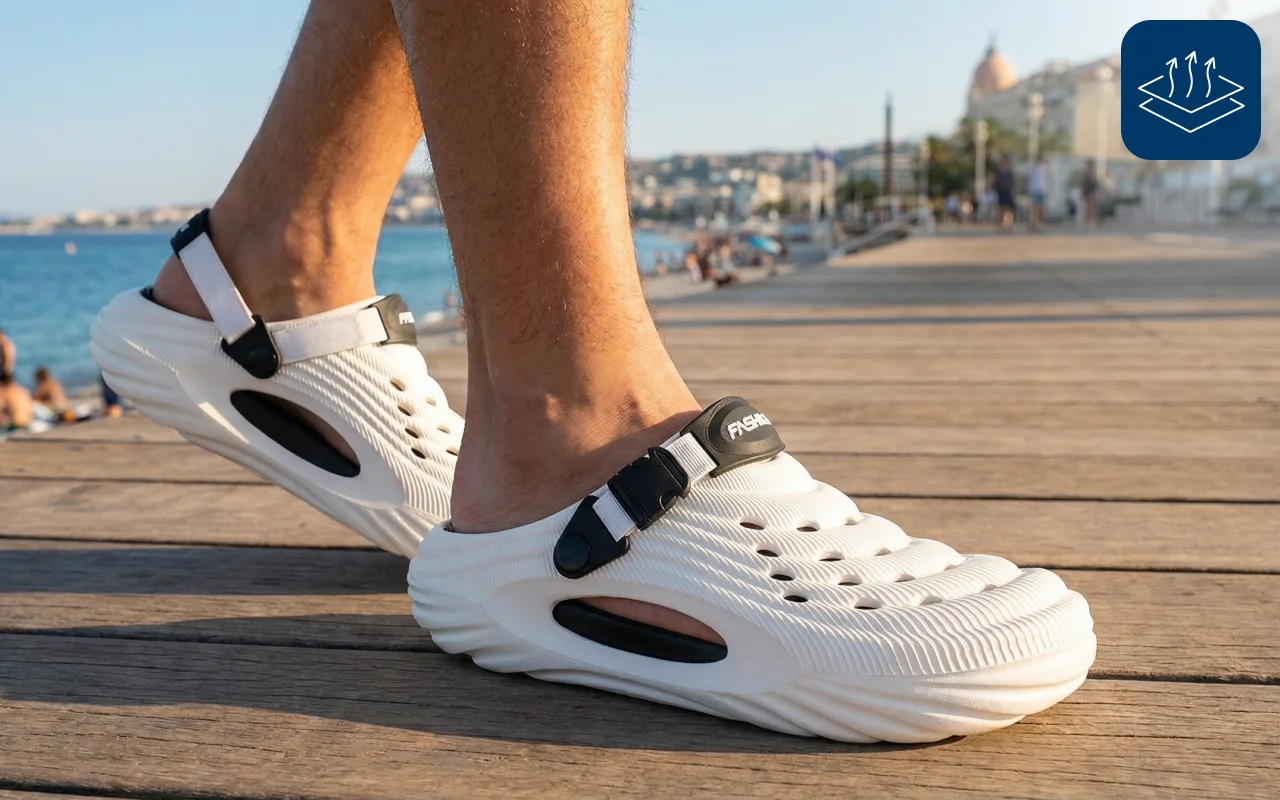 Ventilation holes let water drain out fast after beach visits. Feet stay dry and fresh, even after getting wet outdoors.