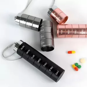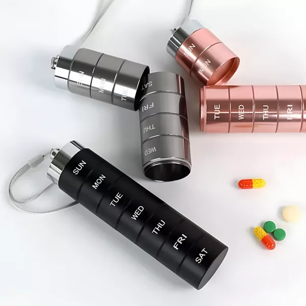 The metal pill keeper is awesome. No more searching for scattered tablets. It organizes everything for me in the right order.