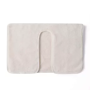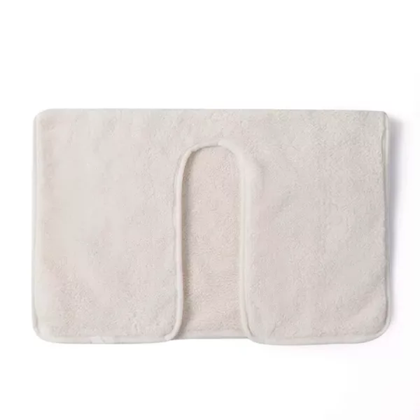 The U-shape fits perfectly around my face, never slides off. It soaks up water fast, and my skin never feels irritated. Washed it a lot, stays soft!