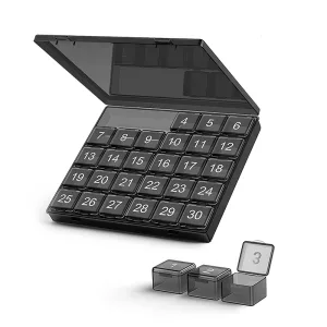 Keep all your pills organised with the Ortorex box. It contains 30 separate boxes to hold a month's supply of medicine. The sturdy build resists cracking and keeps contents safe from moisture.