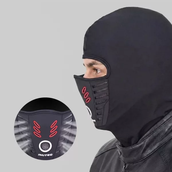 I wear this balaclava under my helmet every morning. It blocks cold wind, so my face never freezes on the way to school.