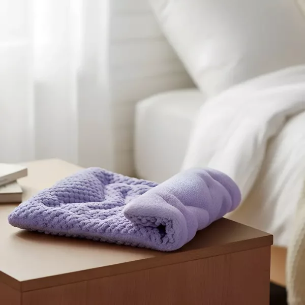 This soft fleece wrap is my go‑to on cold evenings. I warm it up, drape it over my stomach, and it eases cramps and helps me relax.