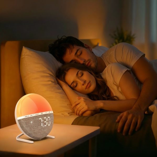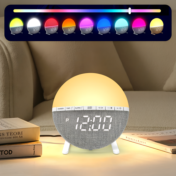 Ortorex wake-up alarm clock uses soft colours that brighten slowly. This helps your body feel calm and energised every morning.