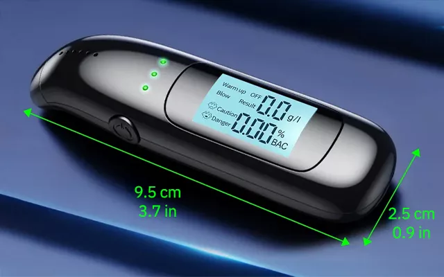 The results can be easily read, even in a dark setting. Green, orange, or red lights indicate the safety level of alcohol consumption.