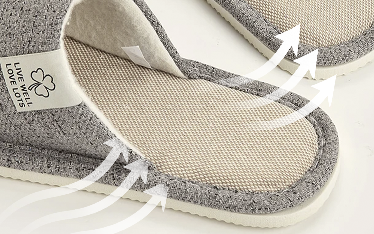 Cotton-linen blend lets air flow and prevents sweaty soles. Enjoy soft fabric that helps skin stay relaxed all day.