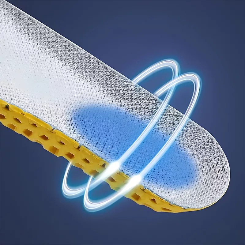 The material has a unique structure that allows air to flow freely. This helps reduce sweating and foot odour.