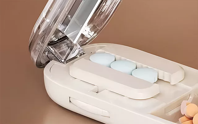 Effortless pill management! I appreciate the secure lid and the neat, precise cutting feature.