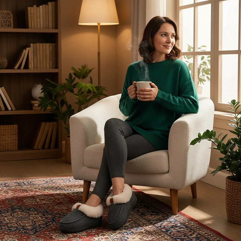 Memory foam cushions every step and effectively reduces foot fatigue. Even long hours at home feel relaxing and easy.