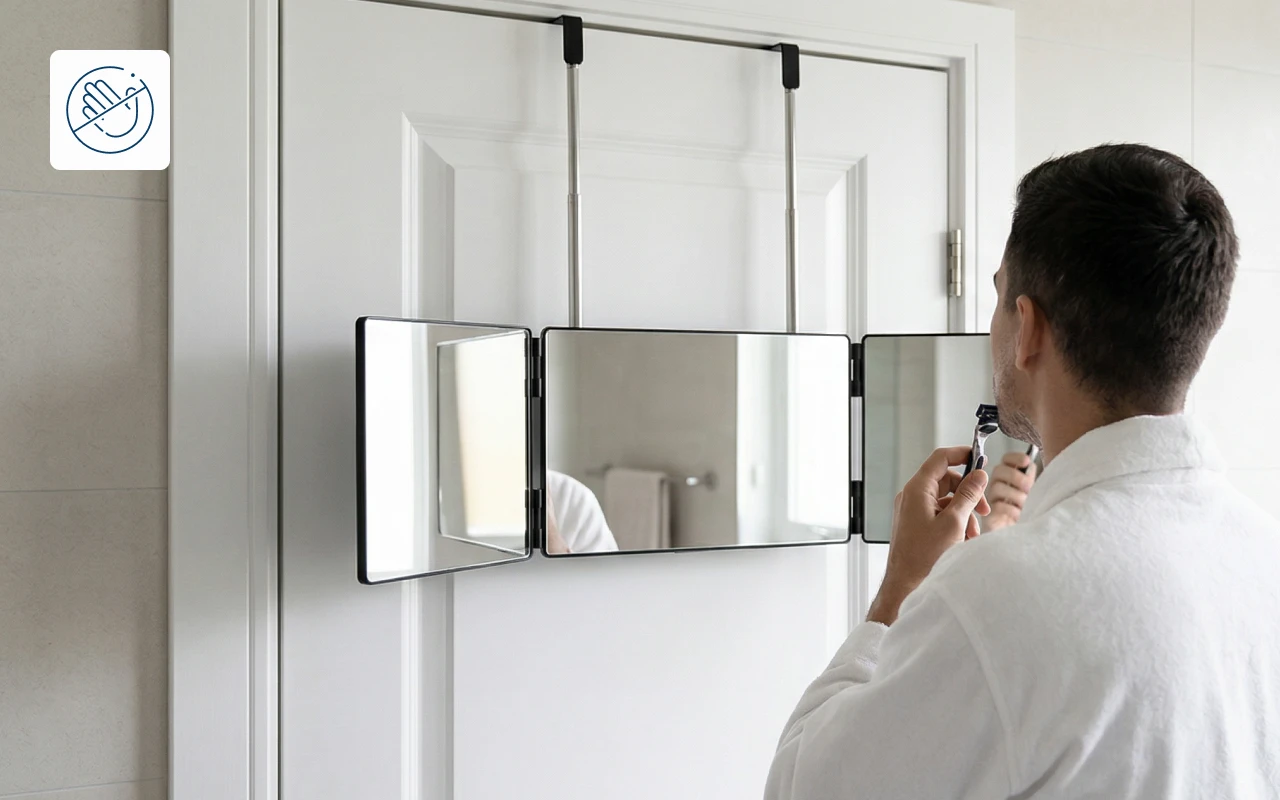 The three-sided mirror lets me trim my beard way better than before. I can finally see the back of my head without twisting around.