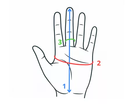 - 1. Hand Length. Measure from the tip of your longest finger down to the crease where your palm begins.