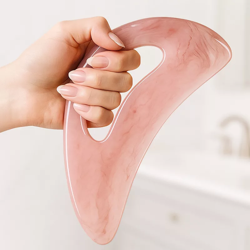I travel a lot, so I keep the Gua Sha in my bag. It’s light, super sturdy, and helps me unwind after long hours in the car.