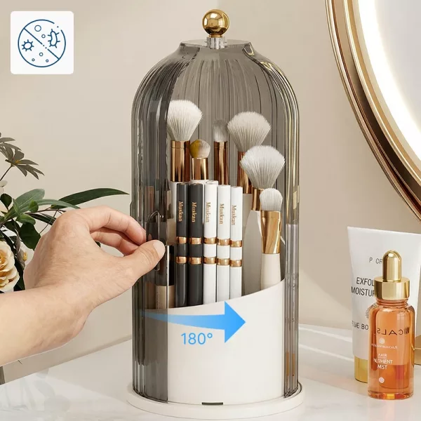 This brush box keeps everything tidy and I can always find my brushes fast. The spinning is smooth and the lid keeps everything dust-free.