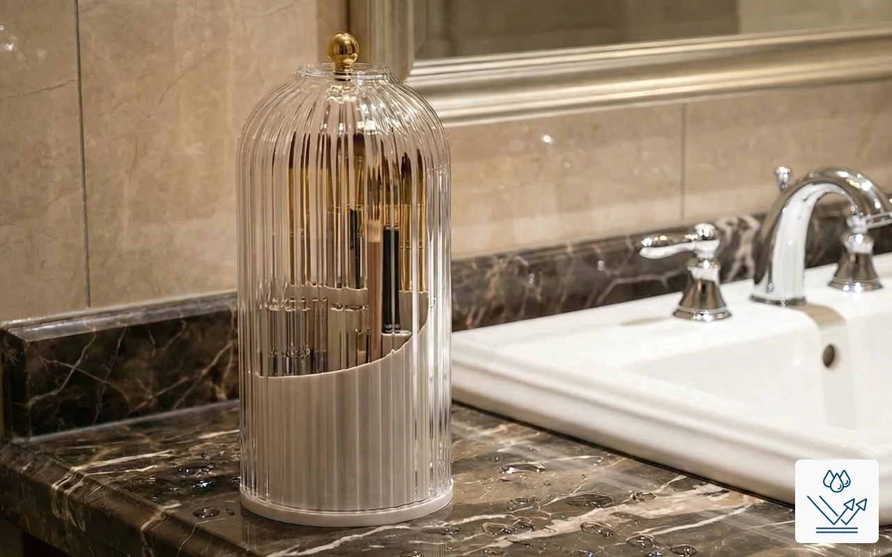 A clear lid shields your beauty tools from dust and splashes. Brushes remain fresh and spotless for flawless results every day.