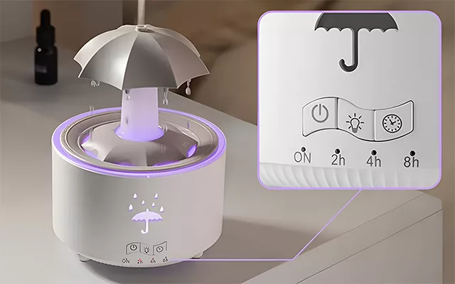 The sound of raindrops is so calming. I always use the umbrella diffuser during study sessions.